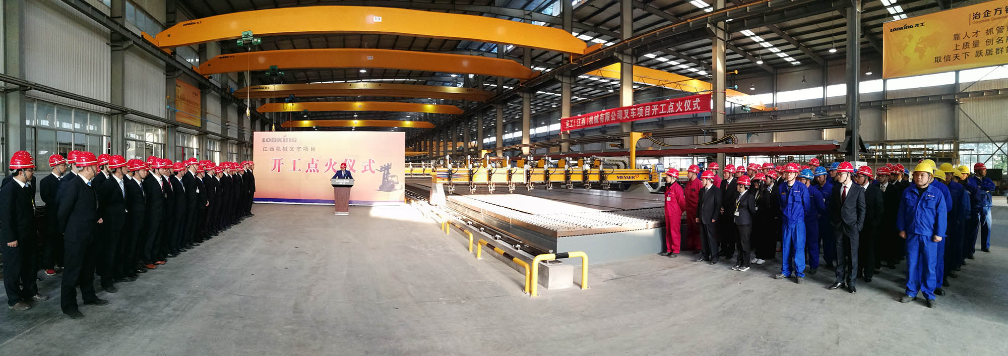 吉时八点整,在一声声响彻云霄 短视频平台,惊天动地的礼炮声中,总经理钟津年先生点燃了叉车整机项目的火焰切割机,这标志着龙工(江西)有限公司叉车整机项目正式点火生产,也标志着龙工(江西)机械有限公司正式迈入了生产叉车整机的新时代.